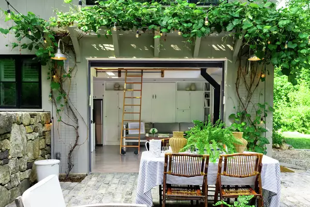 Outside also has a grill, Adirondack chairs, a fire pit and hammock as well as the aforementioned four-person barrel sauna and outdoor rain shower.